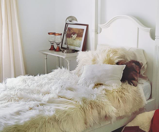 Manta de Piel de Cabra Angora Natural 1.20m x 1.80m | Color Blanco