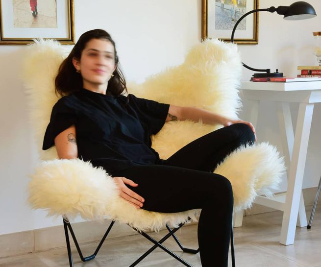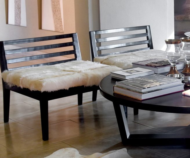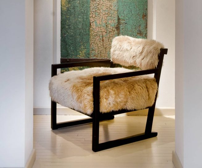 Silla con Brazos CHARLOTTE con Asiento y Respaldo en Cuero de Oveja Natural Pelo Alto